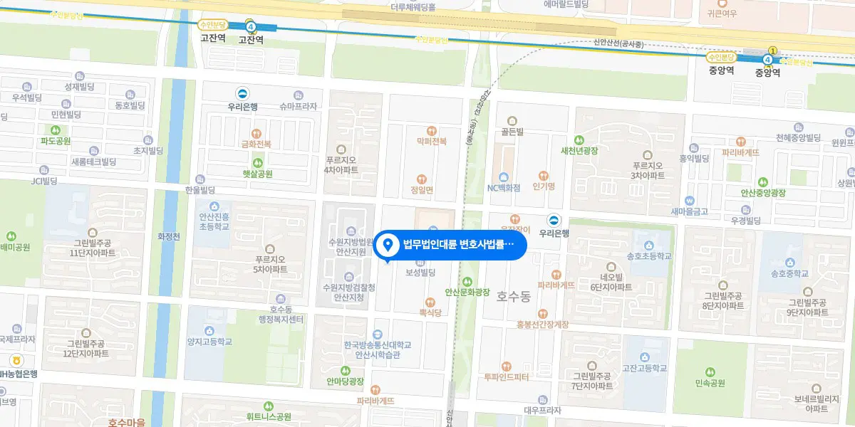 경기도 안산시 단원구 광덕서로 72, 고잔동 중앙법조빌딩 303-304호 법무법인(유한)대륜 안산 분사무소