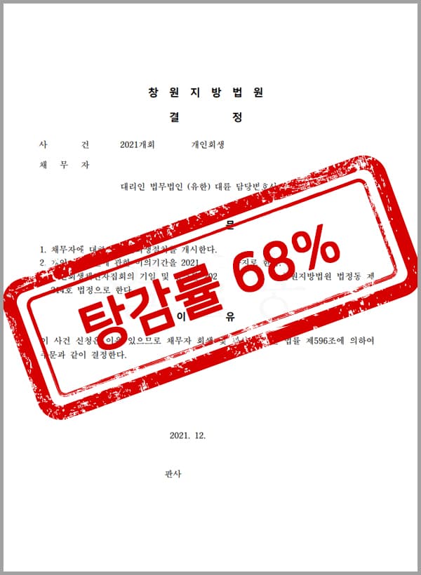 원금의 68%를 탕감 및 60개월 변제하는 것으로 개시결정